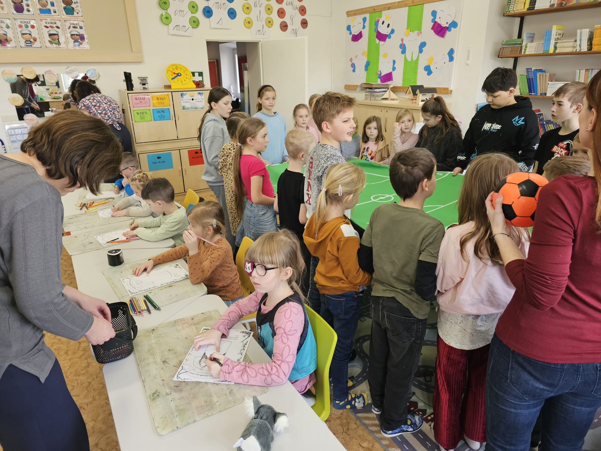 Na daný text si připravila prezentaci (obrázky tvořila pomocí AI 😉), kontrolní otázky pro děti a žáky (s odměnou), kreslení vlastního fotbalového dresu i hraní fotbalu. Vše jsme zvládli na jedničku. Pokud Vás udivuje, že paní vychovatelka Maruška nečetla, je to tím, že ji „zradil“ hlas.