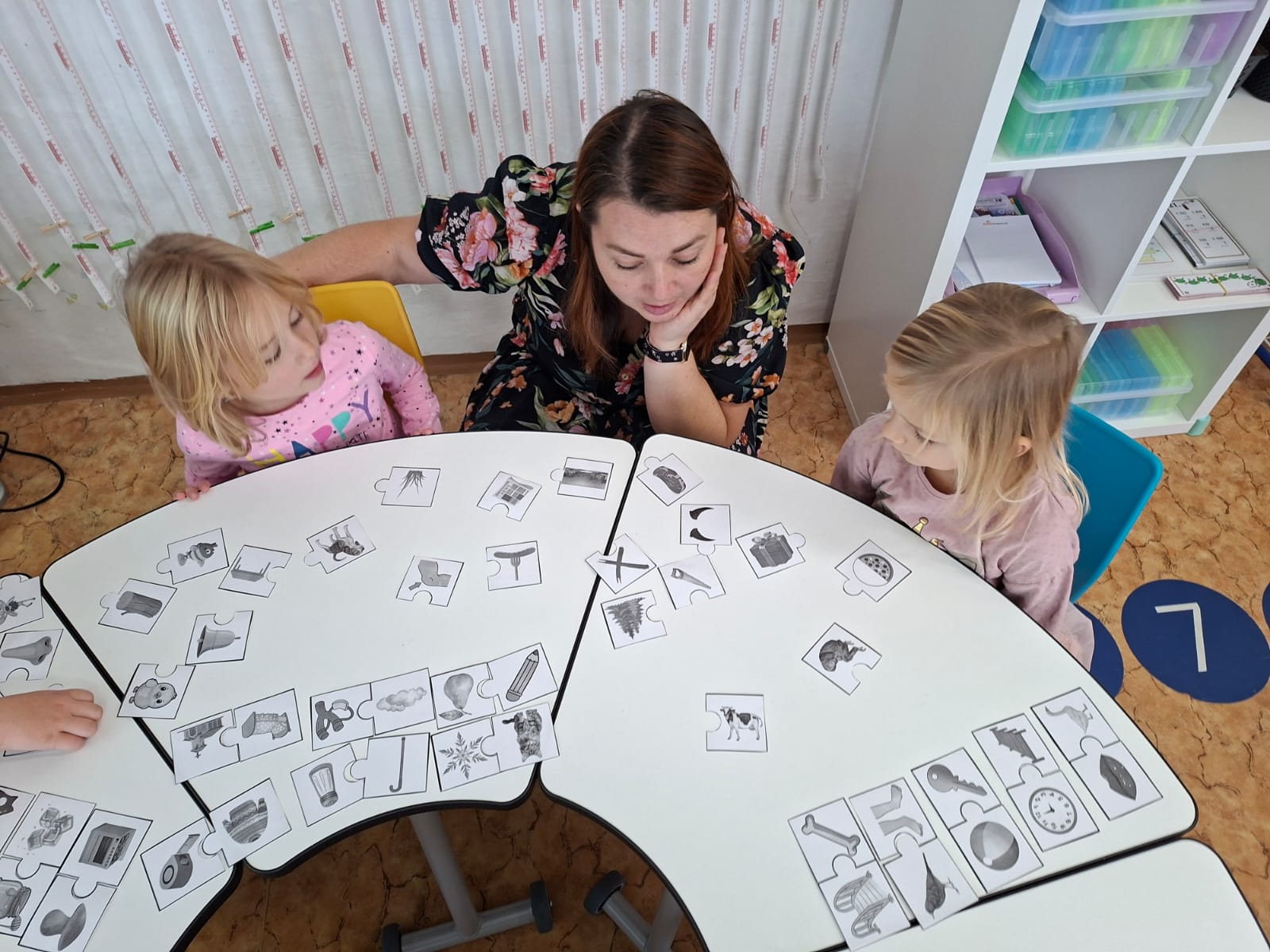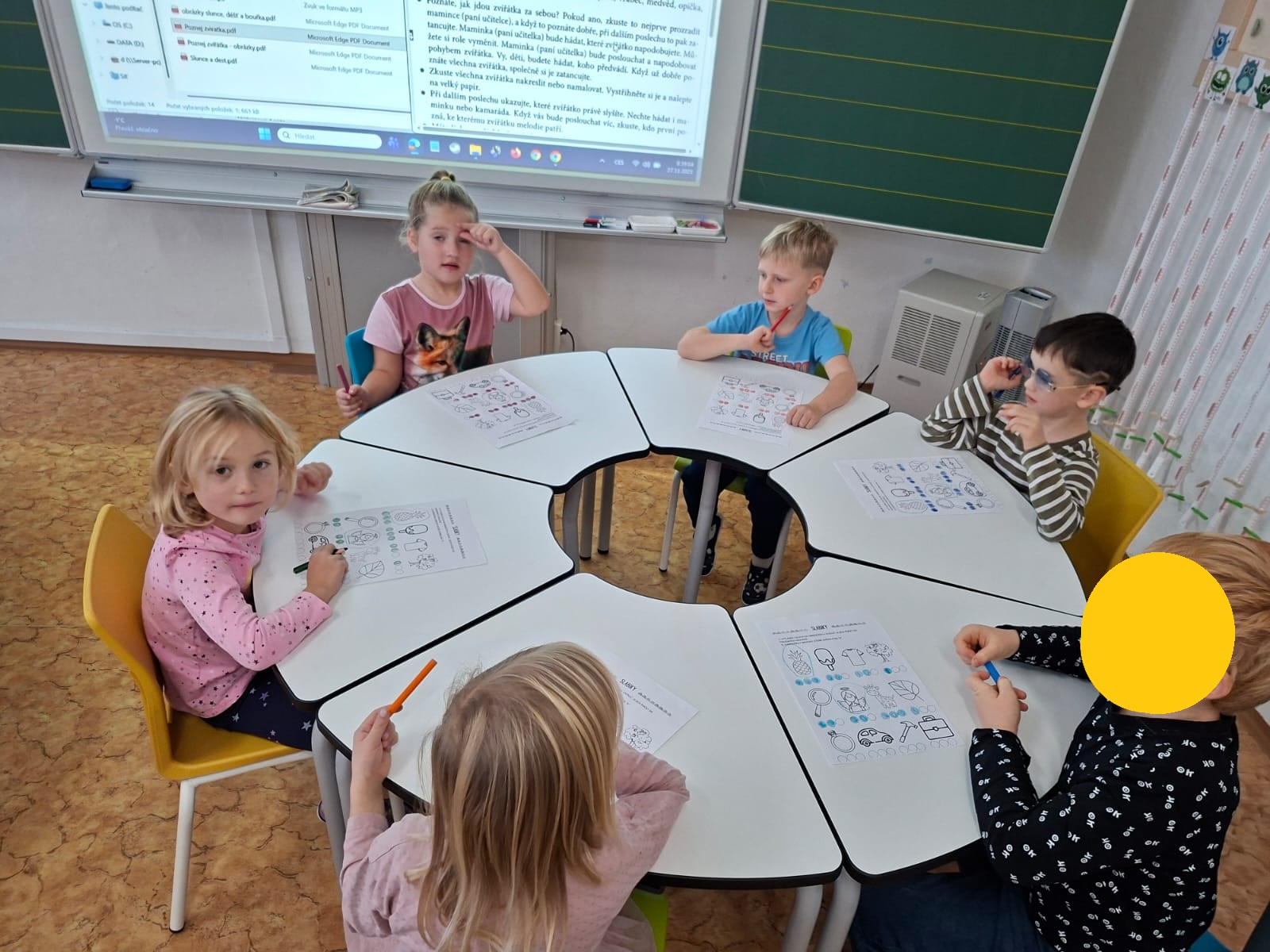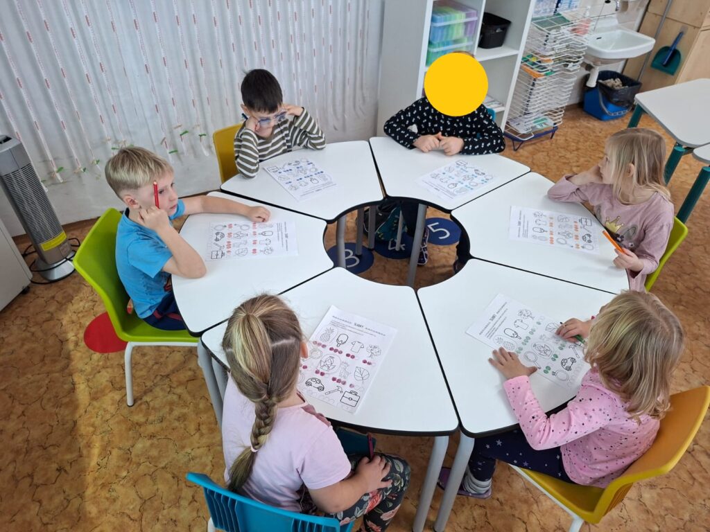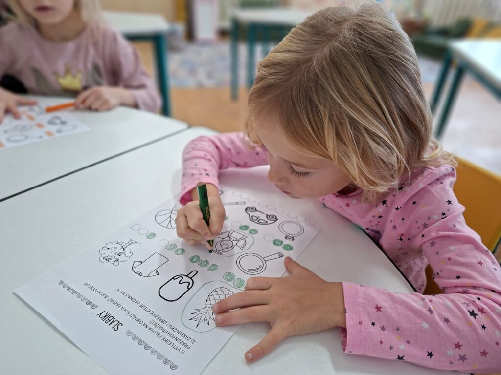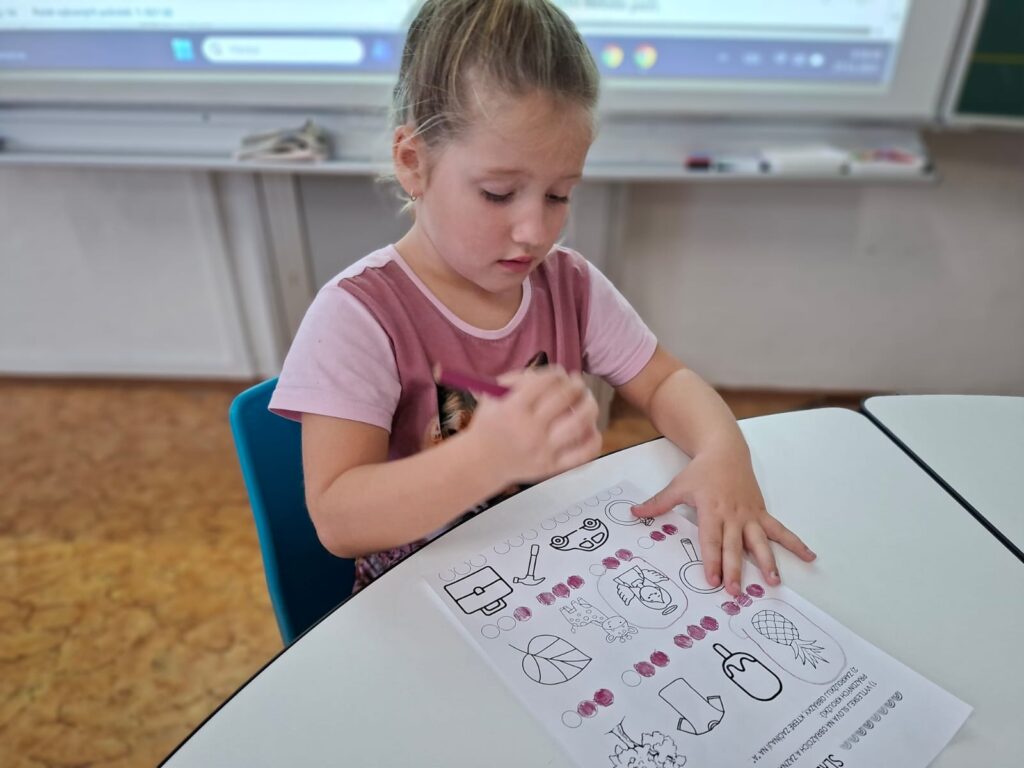 Tentokrát děti rýmovaly, hledaly rozdíly, počítaly slabiky a mnoho dalšího. Hlavně se ale seznamovaly s budoucí paní učitelkou a s „atmosférou“ ve škole. 😉