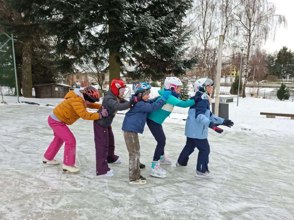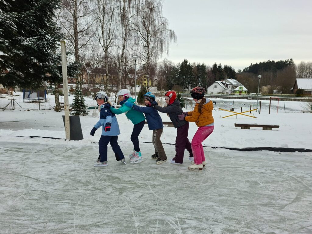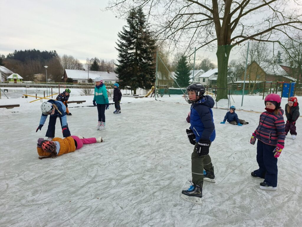 V rámci tělesné výchovy naši starší žáci využili písečské kluziště a společně s paní učitelkou Kájou vyrazili potrénovat bruslařské dovednosti. Někteří naši chlapci pravidelně bruslí v rámci trénování hokeje v Bystřici n. P., ostatní děti jsou nadšení amatéři. Všichni si dvouhodinovou akci maximálně užili. Mrkněte….😉😁