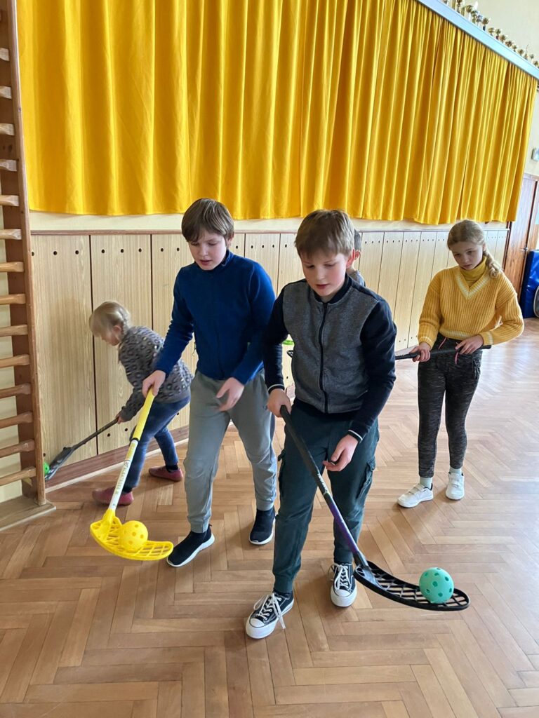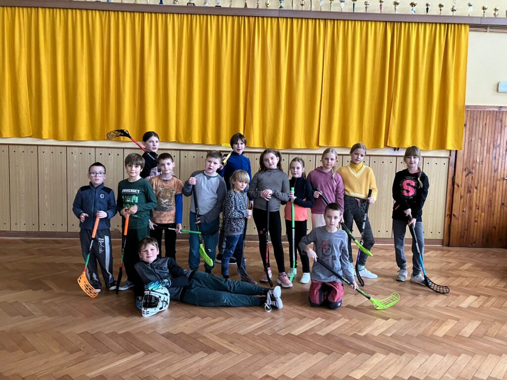 Letos naše škola nabídla žákům kromě dramatického, výtvarného a tanečně-pohybového kroužku také florbalový kroužek. Žáky trénuje paní učitelka Martina Veselá.