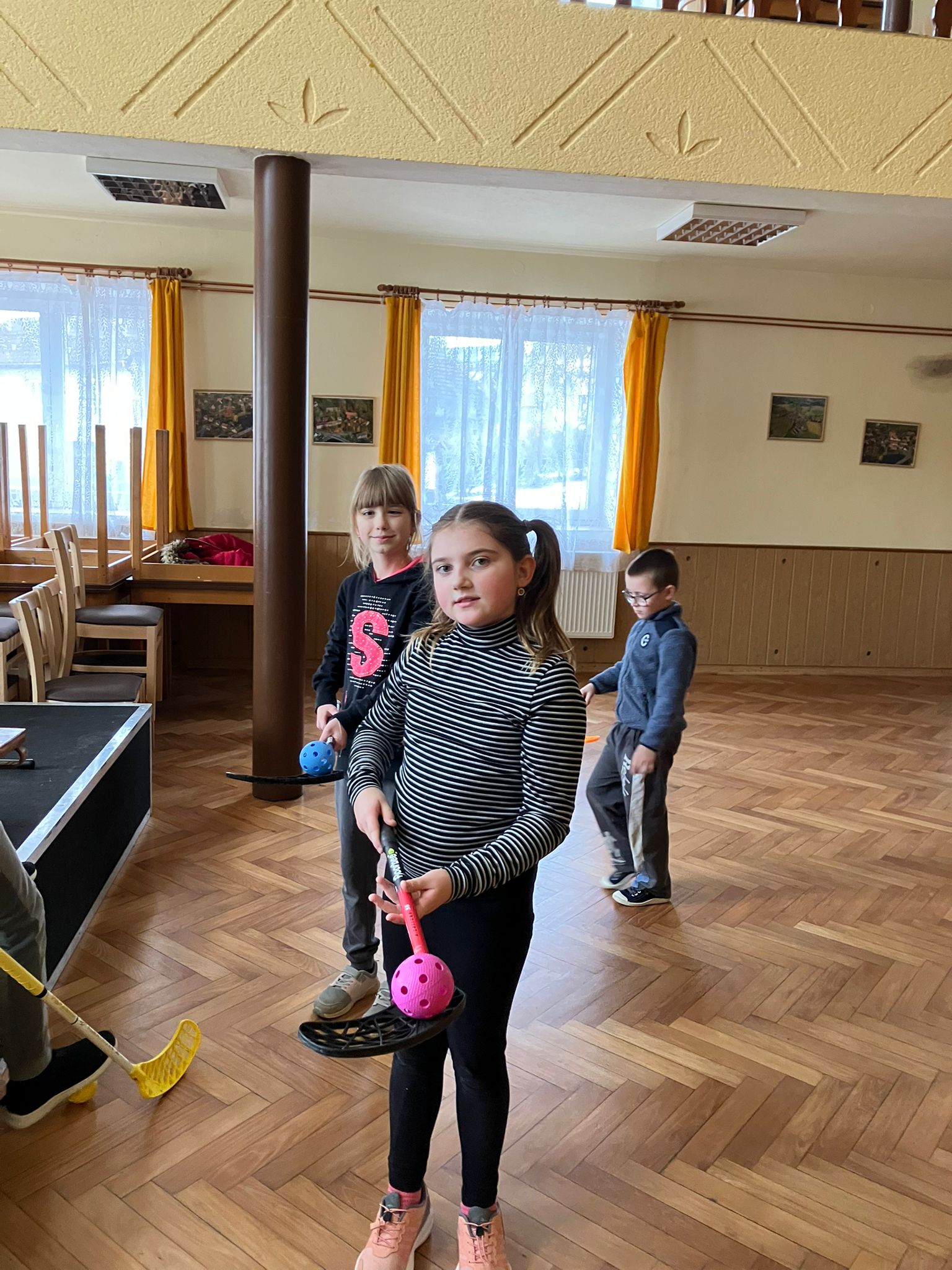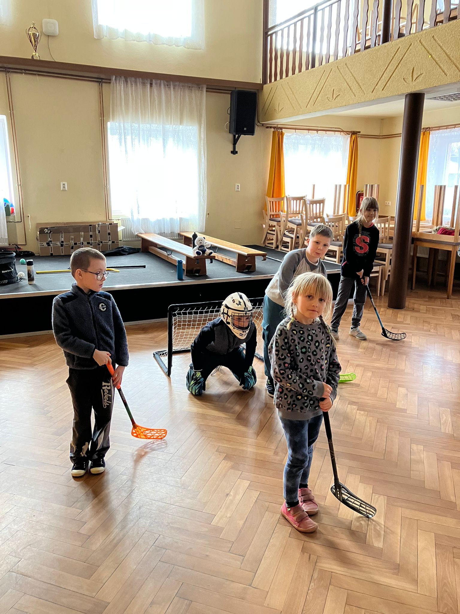 Letos naše škola nabídla žákům kromě dramatického, výtvarného a tanečně-pohybového kroužku také florbalový kroužek. Žáky trénuje paní učitelka Martina Veselá.