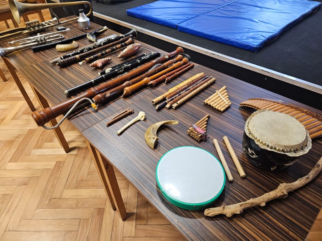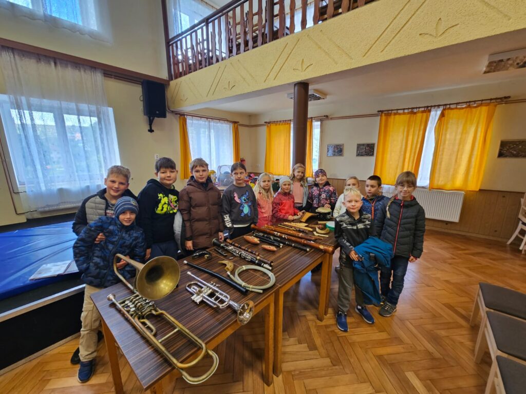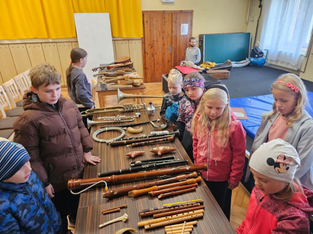 V naší škole je mnoho žáků, kteří navštěvují ZUŠ a hrají na nějaký hudební nástroj. Nemohli jsme tedy odmítnout nabídku na hudebně vzdělávací pořad pana Pavla Josefa Macků, který k nám zavítal z Nedvědice a přivezl s sebou 50 hudebních nástrojů.