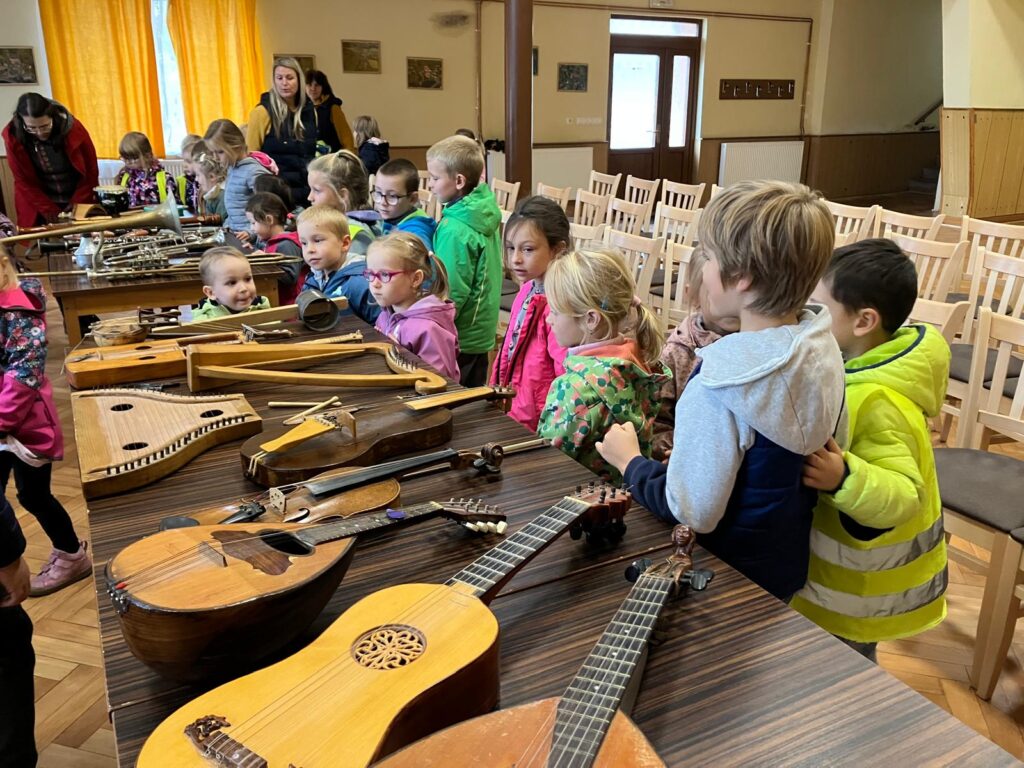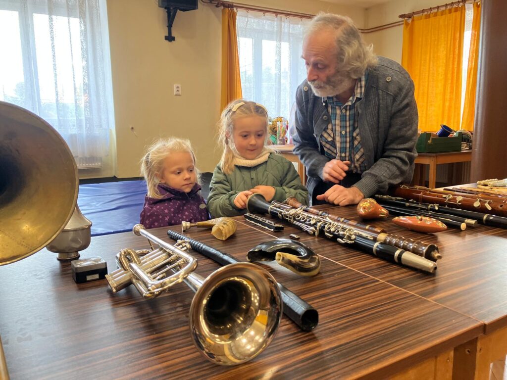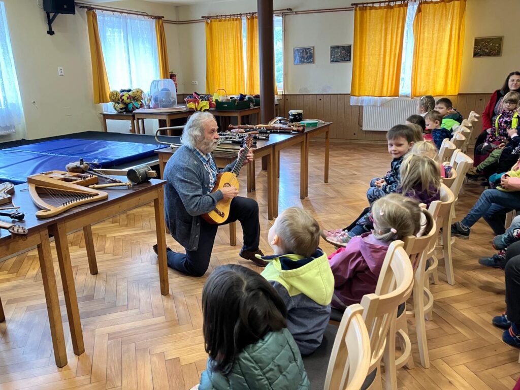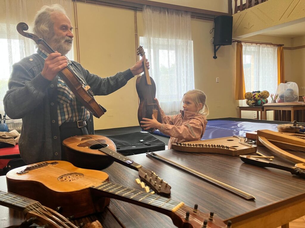 Pan Macků jako bývalý učitel věděl, jak děti zaujmout. Přizpůsobil program jak starším žákům, tak i těm nejmenším. Během jeho přednášky jsme se dozvěděli názvy některých, v dnešní době již nepoužívaných, hudebních nástrojů. Na „babičku houslí“, tzv. fidulu, si mohl náš hudebník Ondřej i zahrát. Ani jeho kamarádka Nina se nestyděla a zkusila zahrát na trochu „jiné housle“.