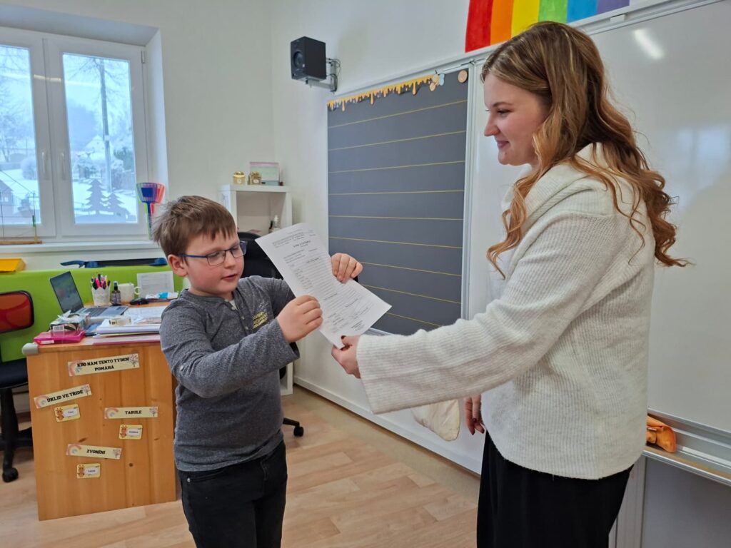 Konec prvního pololetí Autor: Marie NebolováDne 29. 1. 2026V Archiv, Základní škola A je to tady….! Výpis z vysvědčení si dnes odnesli žáci domů. K tomu od nás dostali také „malé“ slovní hodnocení na památku. ❤️ Je radost učit naše šikovné děti. ❤️