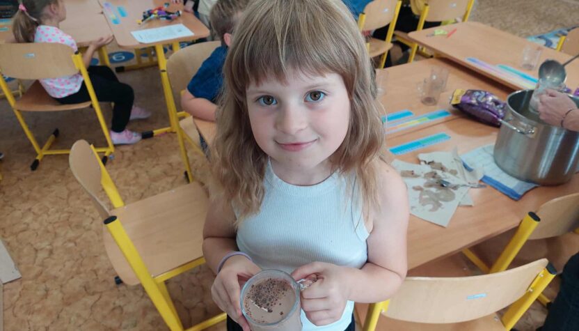 Následovala všemi očekávaná ochutnávka nejoblíbenější dětské sladkosti. Paní vychovatelka nejdříve dětem připravila horkou čokoládu do hrnečků.