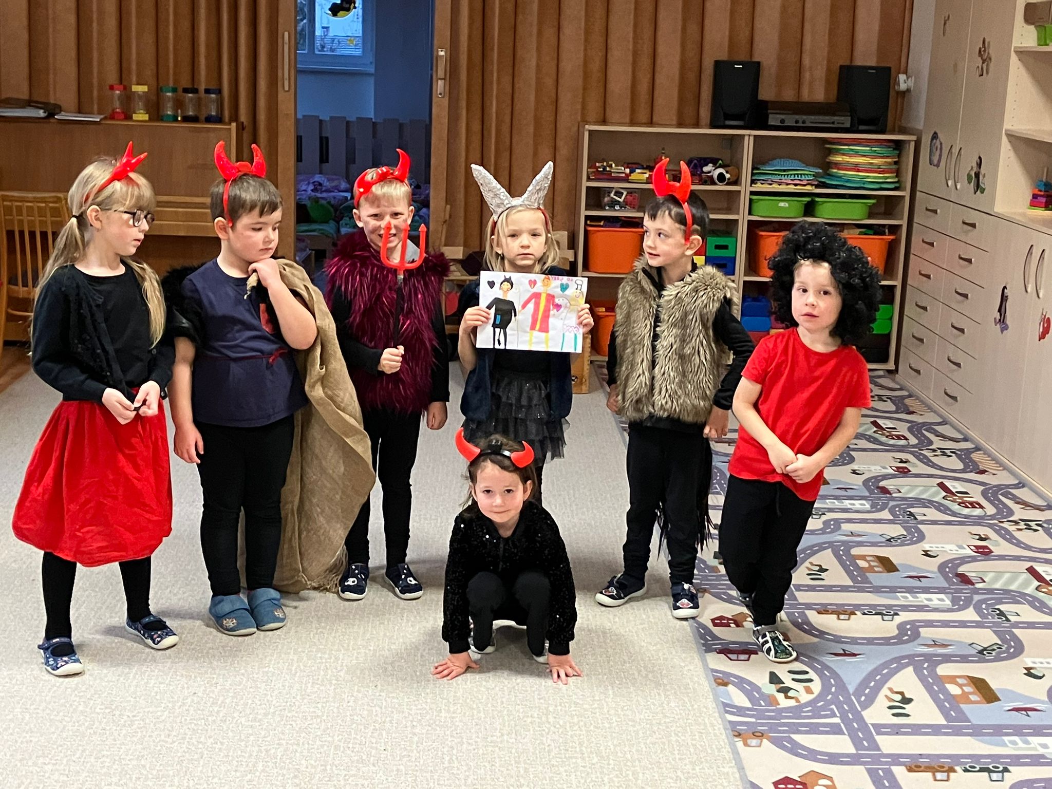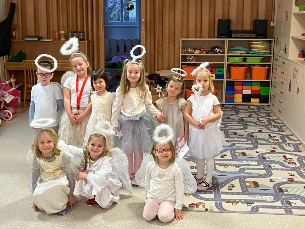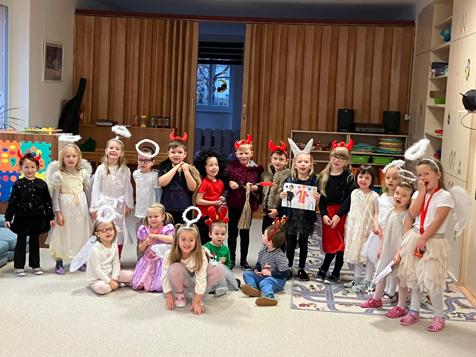 Naše děti se na pátek 5. prosince velmi těšily. Někteřé se ho také trochu obávaly. Pro jistotu všechny přišly do školky oblečené za čerty a anděly, aby ty pravé Mikulášovy pomocníky zmátly.