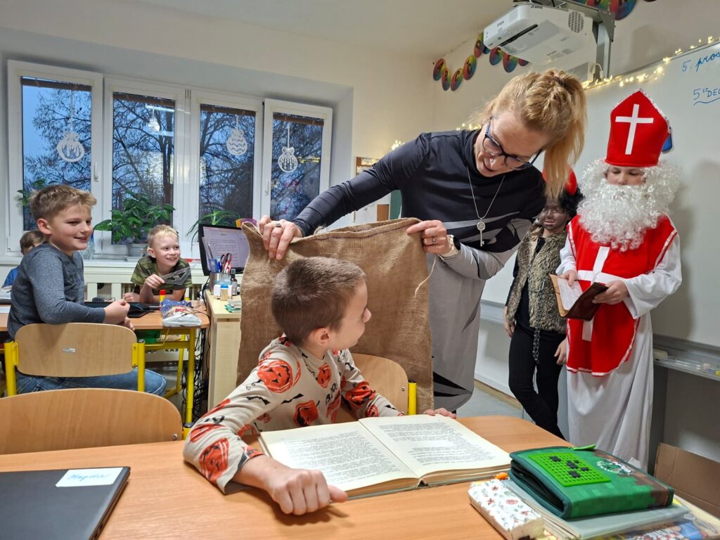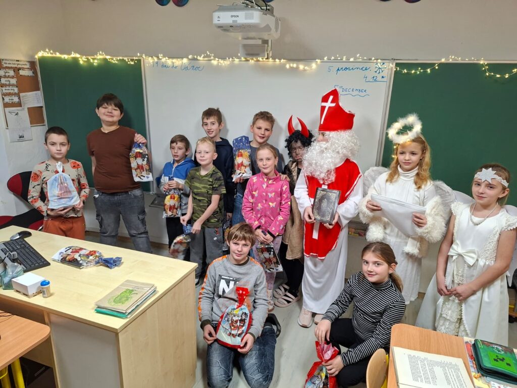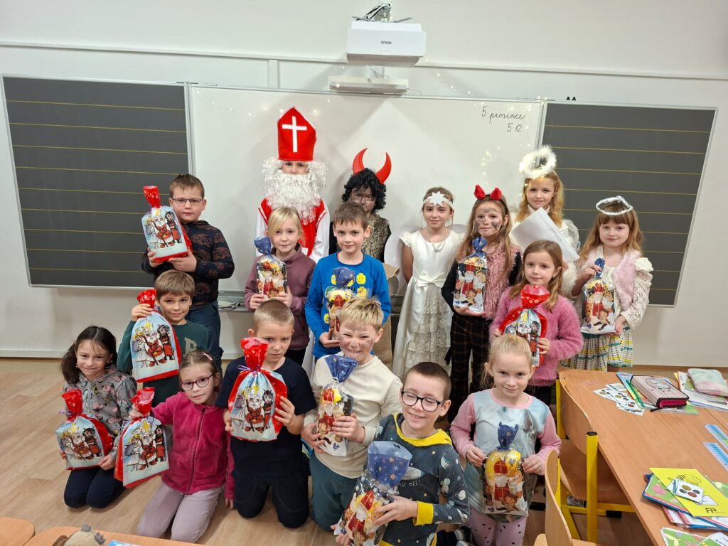 V pátek naši školu navštívil Mikuláš se svými pomocníky. Přinesli žákům balíček naplněný sladkostí, ovocem, hračkou a dalšími drobnými radostmi.