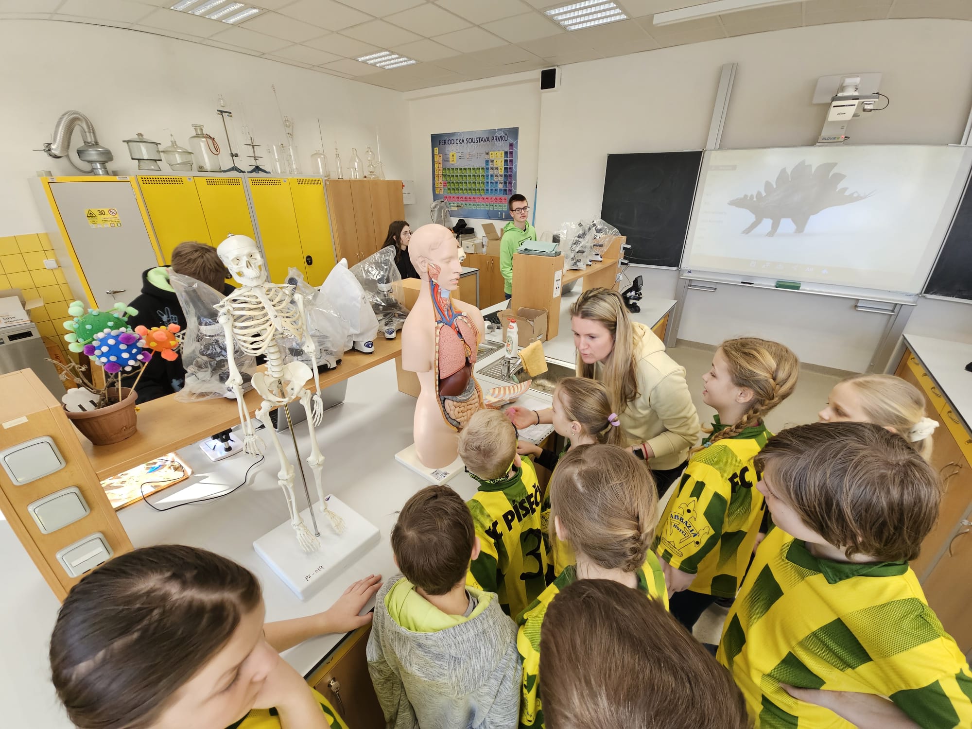 Školou nás prováděly dvě velmi sympatické slečny z osmého ročníku. Postupně nám ukázaly odborné učebny a IT vymoženosti velké školy. Pro děti i vyučující měla škola připravené bohaté pohoštění.