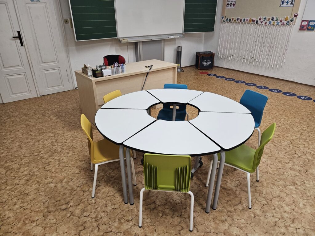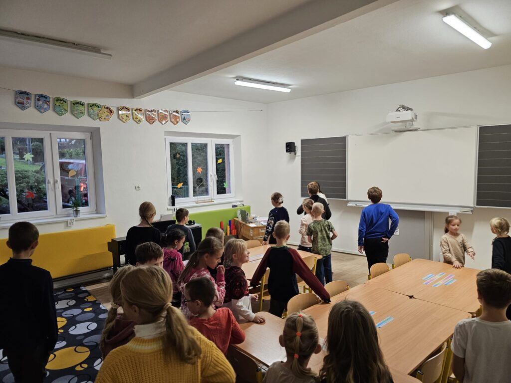 Velkou třídu jsme změnili na školní družinu a postupně zde vybudujeme také učebnu matematiky a anglického jazyka. Zatím nám přišel první set jednodílných lavic a židlí, na konci listopadu bychom měli mít učebnu a zároveň družinu kompletní.