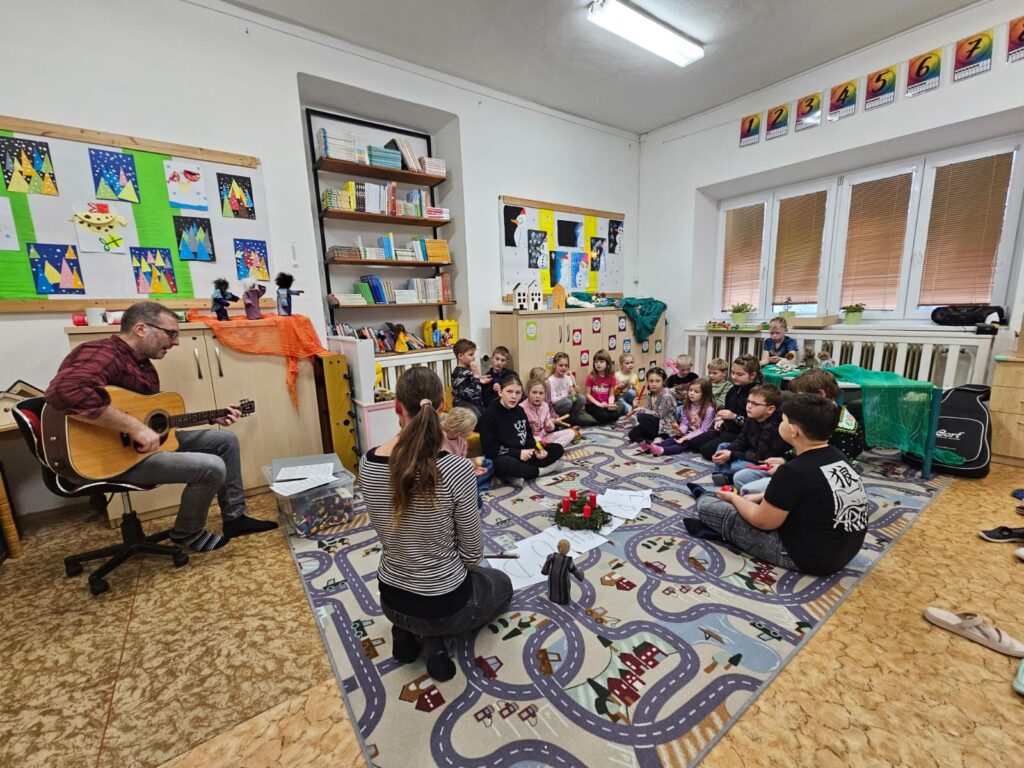 V pondělí 15. prosince navštívila naši školu a školku evangelická paní farářka se svým manželem, aby naše děti a žáky seznámila s vánočním příběhem zrození Ježíška.