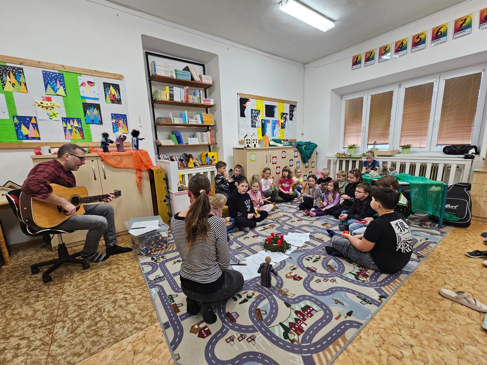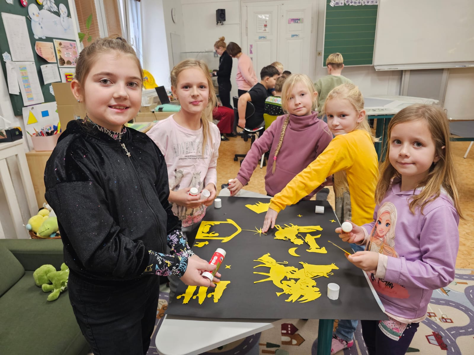 Pomocí loutek se děti dozvěděly celý příběh, zazpívaly si a dokonce si vyrobily svůj betlém.