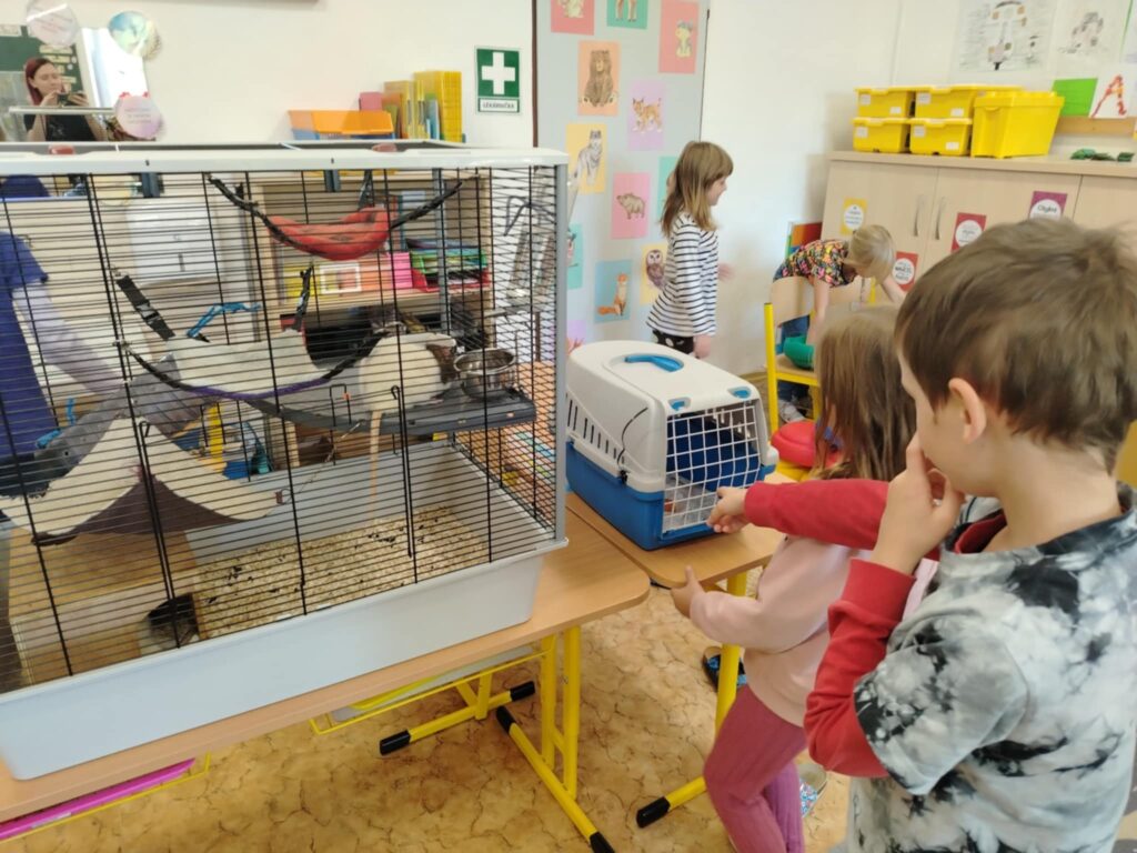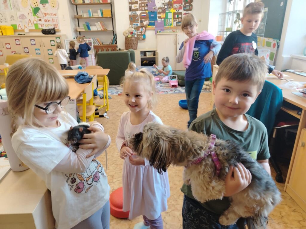 Naši žáci mají své školní mazlíčky, dva osmáky degu. Tentokrát si ale do odpolední družiny mohli donést svého domácího mazlíčka, o kterém si s paní vychovatelkou povídali. V naší družině se totiž slavil Den zvířat.